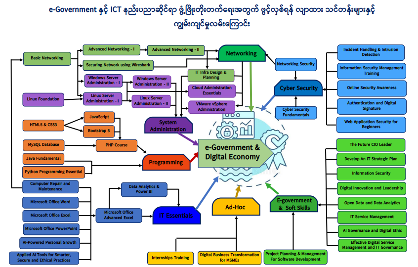 ၂၃-၅-၂၀၁၆ ရက်နေ့တွင် PC for Office Application Course (Basic)၊ သင်တန်းအမှတ်စဉ် (၀၁၀၁/၀၁/၁၆-၁၇) သင်တန်းဖြင့် စတင်ဖွင့်လှစ်ခဲ့သည့် သင်တန်းကျောင်းသည် ပြည်ထောင်စုဝန်ကြီးဌာနနှင့် အစိုးရအဖွဲ့အစည်းများမှ CIO/ACIO အပါအဝင် နိုင်ငံ့ဝန်ထမ်းများအား e-Government ၊ ဆိုက်ဘာလုံခြုံရေးနှင့် အိုင်စီတီသင်တန်းများကို ယနေ့တိုင် ဖွင့်လှစ်ပို့ချပေးလျက် ရှိပါသည်။
