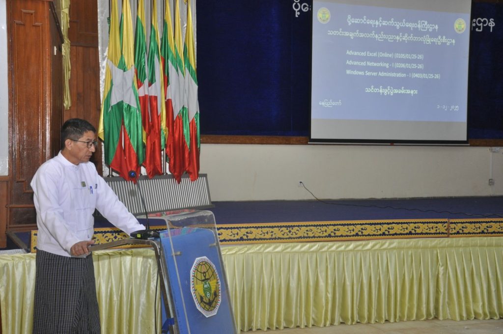 ပို့ဆောင်ရေးနှင့် ဆက်သွယ်ရေးဝန်ကြီးဌာန၊ သတင်းအချက်အလက်နည်းပညာနှင့် ဆိုက်ဘာလုံခြုံရေး ဦးစီးဌာန၊ သင်တန်းကျောင်း၏ ၂၀၂၅-၂၆ ဘဏ္ဍာရေးနှစ်အတွင်း (ပထမအကြိမ်) Advanced Excel (Online) သင်တန်း၊ Advanced Networking – I သင်တန်းနှင့် Windows Server Administration -I သင်တန်းများ၏ သင်တန်းဖွင့်ပွဲကို ဒီဇင်ဘာလ ၁ ရက်နေ့ နံနက်ပိုင်းတွင် ရုံးအမှတ် ၂ ၊ စုပေါင်းခန်းမတွင် ကျင်းပပြုလုပ်ရာ သတင်းအချက်အလက်နည်းပညာနှင့် ဆိုက်ဘာလုံခြုံရေးဦးစီးဌာန၊ ညွှန်ကြားရေးမှူးချုပ် ဦးဆန်းဝင်းထွန်း၊ သင်တန်းကျောင်း၊ ကျောင်းအုပ်ကြီး ဒေါ်နှင်းခိုင်အေးနှင့်တကွ ဌာနအသီးသီးမှ အကြီးအကဲများ၊ သင်တန်းဆရာ/ ဆရာမများ၊ သင်တန်းအထောက်အကူပြု တာဝန်ခံများ၊ ပြည်ထောင်စုအဆင့် အဖွဲ့အစည်းများနှင့် ပြည်ထောင်စု ဝန်ကြီးဌာနများမှ သင်တန်းသား/သင်တန်းသူ စုစုပေါင်း ၇၉ ဦး တို့ တက်ရောက်ကြောင်း သိရှိရပါသည်။