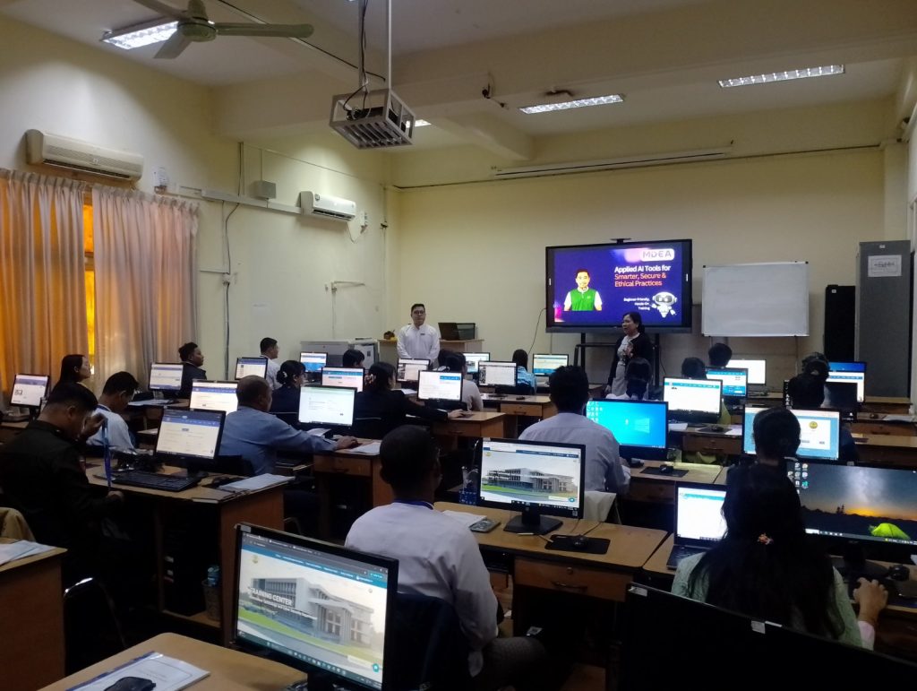 Applied AI Tools for Smarter, Secure and Ethical Practices သင်တန်းကို ဒီဂျစ်တယ်စီးပွားရေးဆိုင်ရာလုပ်ငန်းရှင်များအသင်း (MDEA) နှင့် သတင်းအချက်အလက် နည်းပညာနှင့် ဆိုက်ဘာလုံခြုံရေးသင်တန်းကျောင်း တို့ ပူးပေါင်း၍ ဖွင့်လှစ်ပို့ချခဲ့ခြင်းဖြစ်ကြောင်း သိရှိရပါသည်။ သင်တန်းတွင် ChatGPT၊ Gemini၊ Copilot၊ Notion AI၊ Canva AI စသည့် AI Tools များကို အဆင့်မြင့်အသုံးချ၍ မှတ်စုရေးမှတ်ခြင်း၊ အစီရင်ခံစာများ အနှစ်ချုပ်ရေးသားခြင်း၊ သုတေသနပြုလုပ်ခြင်း၊ အစည်းအဝေးမှတ်တမ်းများမှ အချက်အလက်များ ထုတ်ယူရေးသားခြင်း၊ လုပ်ငန်းစဉ်များအား အလိုအလျောက် စီမံခန့်ခွဲနိုင်ခြင်း၊ ဒီဇိုင်းများနှင့် Presentation များကို လွယ်ကူမြန်ဆန်စွာ ပြုလုပ်နိုင်ခြင်း စသည့်ဖြင့် သင်ခန်းစာများကို ပို့ချပေးမည်ဖြစ်ကြောင်း သိရှိရပါသည်။