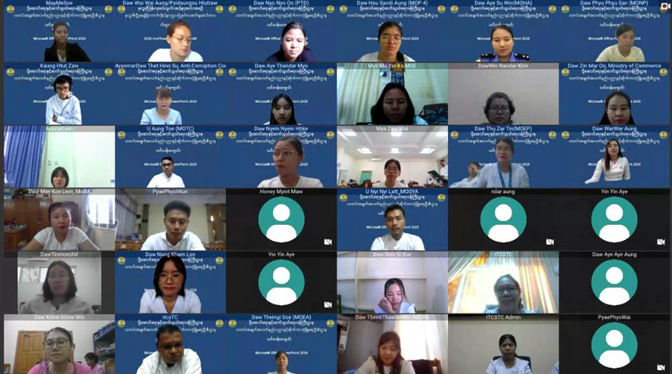 သင်တန်းဆင်းပွဲတွင် ဒုတိယညွှန်ကြားရေးမှူးချုပ်မှ သင်တန်းဆင်းအမှာစကား ပြောကြားပြီး သင်တန်းဆင်းလက်မှတ်များ ချီးမြှင့်ခဲ့ပါသည်။ ထို့နောက် Cyber Security Fundamentals သင်တန်းတွင် ထူးချွန်စွာ အောင်မြင်ခဲ့သည့် ပထမဆုရရှိသော သိပ္ပံနှင့်နည်းပညာဝန်ကြီးဌာနမှ ဦးဝင်းမင်းသန့် အားလည်းကောင်း၊ ဒုတိယဆုရရှိသော ပို့ဆောင်ရေးနှင့်ဆက်သွယ်ရေးဝန်ကြီးဌာနမှ ဦးမင်းခန့်ထွေး အားလည်းကောင်း၊ တတိယဆု ရရှိသော စီမံကိန်းနှင့်ဘဏ္ဍာရေးဝန်ကြီးဌာနမှ ဦးမင်းထက်အောင် အားလည်းကောင်း ထူးချွန်ဆုများ ချီးမြှင့်ခဲ့ပါသည်။ ဆက်လက်ပြီး Windows Server Administration I သင်တန်းတွင် ထူးချွန်စွာ အောင်မြင်ခဲ့သည့် ပထမဆုရရှိသော သိပ္ပံနှင့်နည်းပညာဝန်ကြီးဌာနမှ ဦးရဲထက်ခေါင် အားလည်းကောင်း၊ ဒုတိယဆုရရှိသော လူမှုဝန်ထမ်း၊ ကယ်ဆယ်ရေးနှင့် ပြန်လည်နေရာချထားရေးဝန်ကြီးဌာနမှ ဒေါ်အိမ့်စန္ဒီကေ အားလည်းကောင်း၊ တတိယဆုရရှိသော ပို့ဆောင်ရေးနှင့်ဆက်သွယ်ရေးဝန်ကြီးဌာနမှ ဒေါ်ဆုသက်မွန် အားလည်းကောင်း ဆုများ အသီးသီးပေးအပ်ခဲ့ပါသည်။ Microsoft Office Word 2019 (Online) သင်တန်းတွင် ပထမဆုရရှိသော စွမ်းအင်ဝန်ကြီးဌာနမှ ဒေါ်သီရီသျှန်၊ ဒုတိယဆုရရှိသော သာသနာရေးနှင့်ယဉ်ကျေးမှု ဝန်ကြီးဌာနမှ ဦးအောင်ကောင်းမြတ်၊ တတိယဆုရရှိသော ကာကွယ်ရေးဝန်ကြီးဌာနမှ ဦးကောင်းထွဋ်ဇော်တို့အား Online မှ တဆင့်ဆုများအသီးသီးကြေညာကာ သင်တန်းဆင်းပွဲ အခမ်းအနားကို ညနေ (၄:၃၀)နာရီတွင် ရုပ်သိမ်းခဲ့ပါသည်။